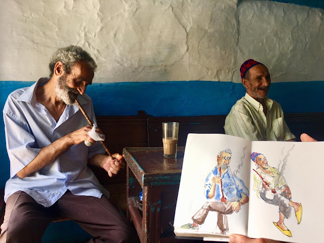 E por fim mais um desenho COM TEMPO, enquanto comia umas sardinhas assadas, num terraço por cima do mercado de peixe
