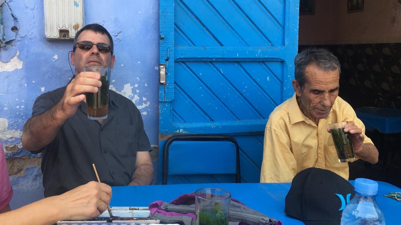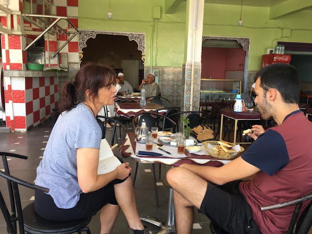 Café Hafa- uma maravilhosa e indiscritivel encosta virada para Gibraltar, com infinitos socalcos de esplanadas onde se bebe chá de hortelã às carradas, e não há marroquino que não esteja agarrado a um canhão :D :D