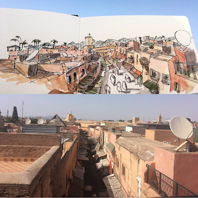 Digam lá o que disserem, façam o elogio dos desenhos rápidos, sejam peritos no "foi em 10 minutos", que duma coisa eu tenho a certeza: os desenhos que dão mais gozo são os que são feitos com TEMPO. este, num terraço dum café no topo de um prédio, foi um deles, mas foi desafio extra, porque não é todos os dias que se desenha assim: de cima. (pelo menos eu!)